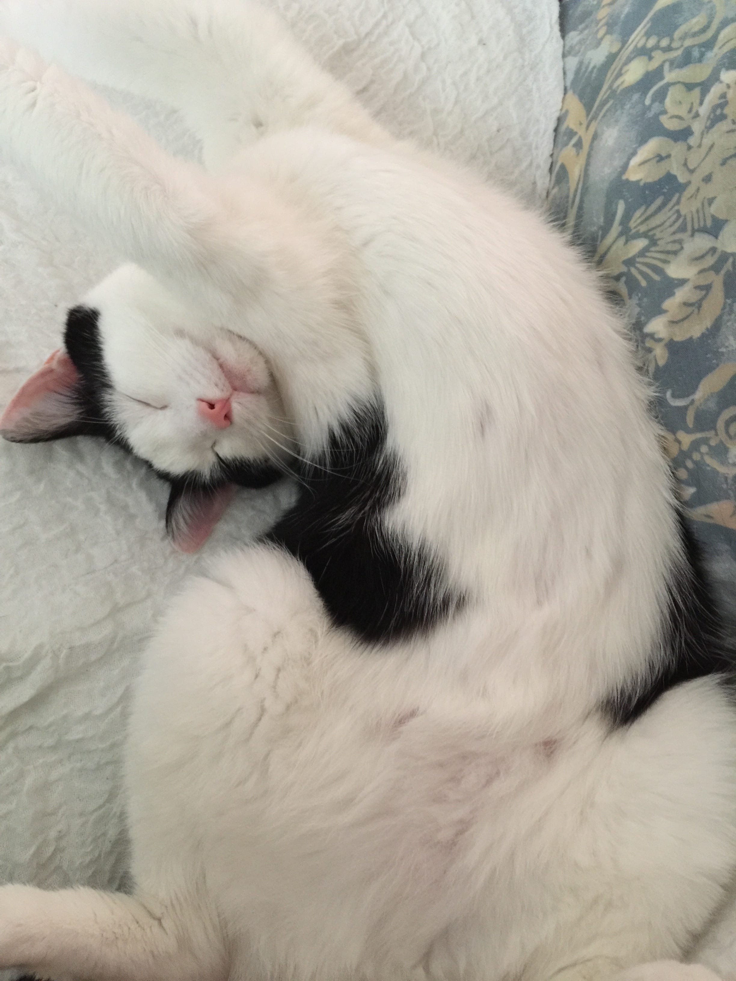 He enjoyed an expensive diet of cat food made to prevent urinary infections, and I would pick him up for cat cuddles whenever possible. (MaxZine and our housemates Spree and Spiky took on his daily feedings and care. I owe them all a debt of gratitude for this.)