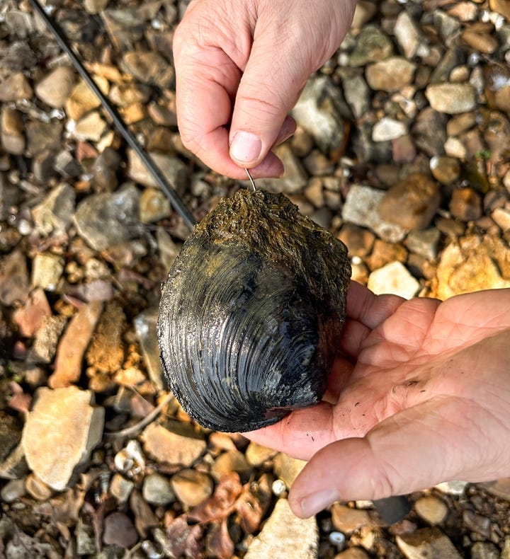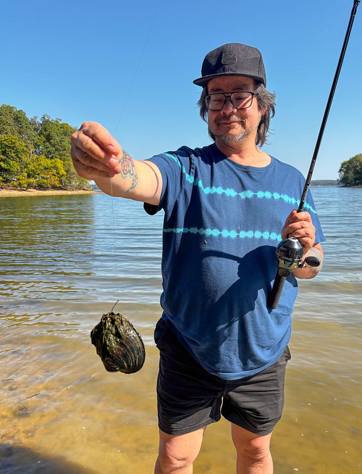 We spent a lazy morning fishing. Putting a squirming worm on a hook made me a bit queasy, but I can see the appeal of waiting for a bite. Fishing is a calm, leisurely, and contemplative way to spend time outdoors. We did not catch any fish, but this shelled creature latched onto one of our hooks. It took considerable effort to detach it and set it free.