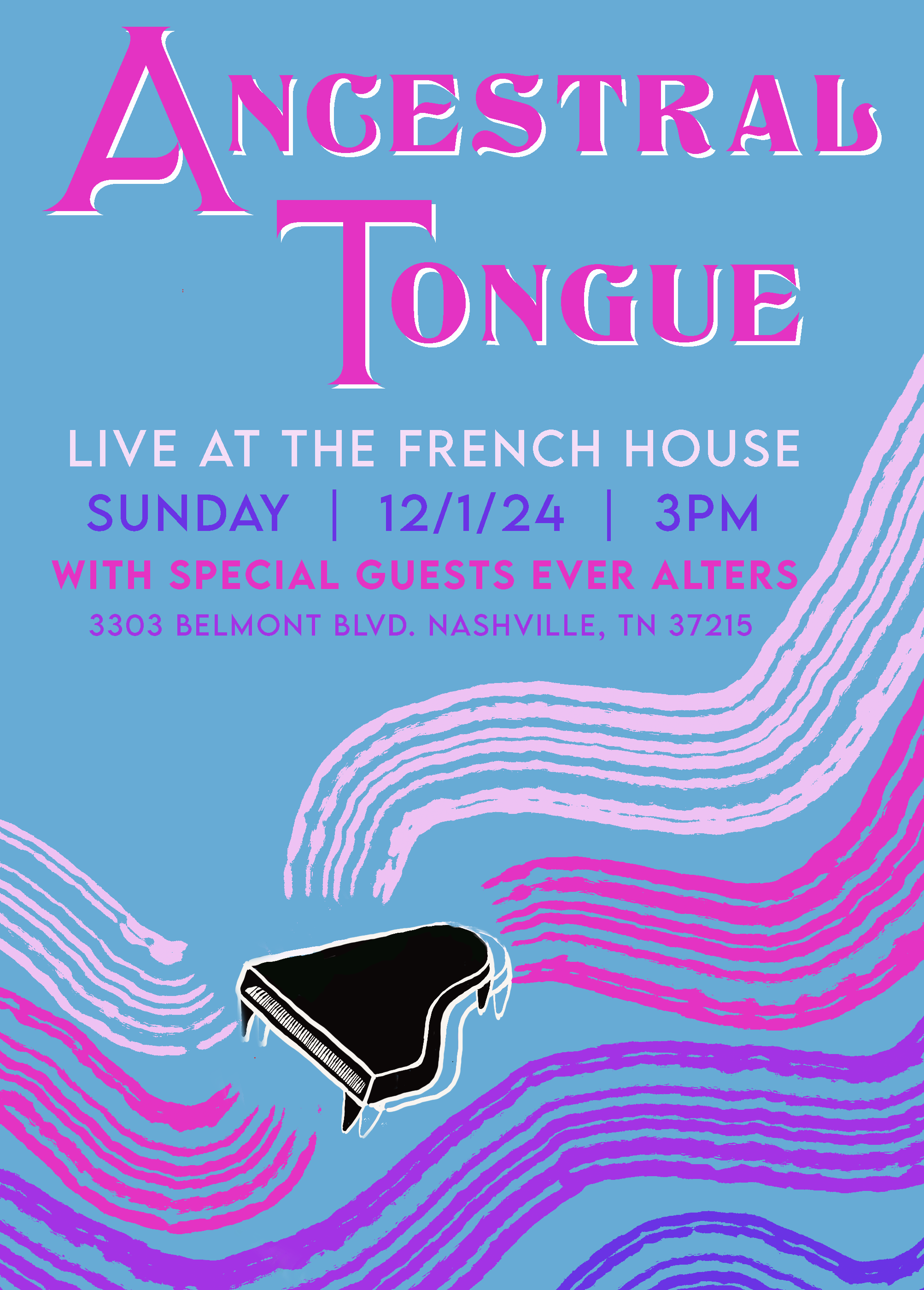 The lovely band Ever Alters will do an opening set before my band and I, Ancestral Tongue, start to play.