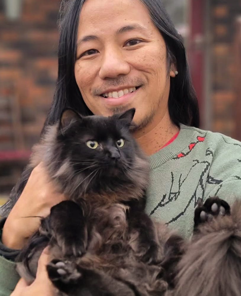 I am staying at my Mom’s house in Nashville for some of the holiday, and we all took various portraits. While my sisters got photos with their kids, I got one with my cat Chopin, who often tags along with me on these longer visits. (MaxZine could not make it and was volunteering to deliver food to families in need this year.)
